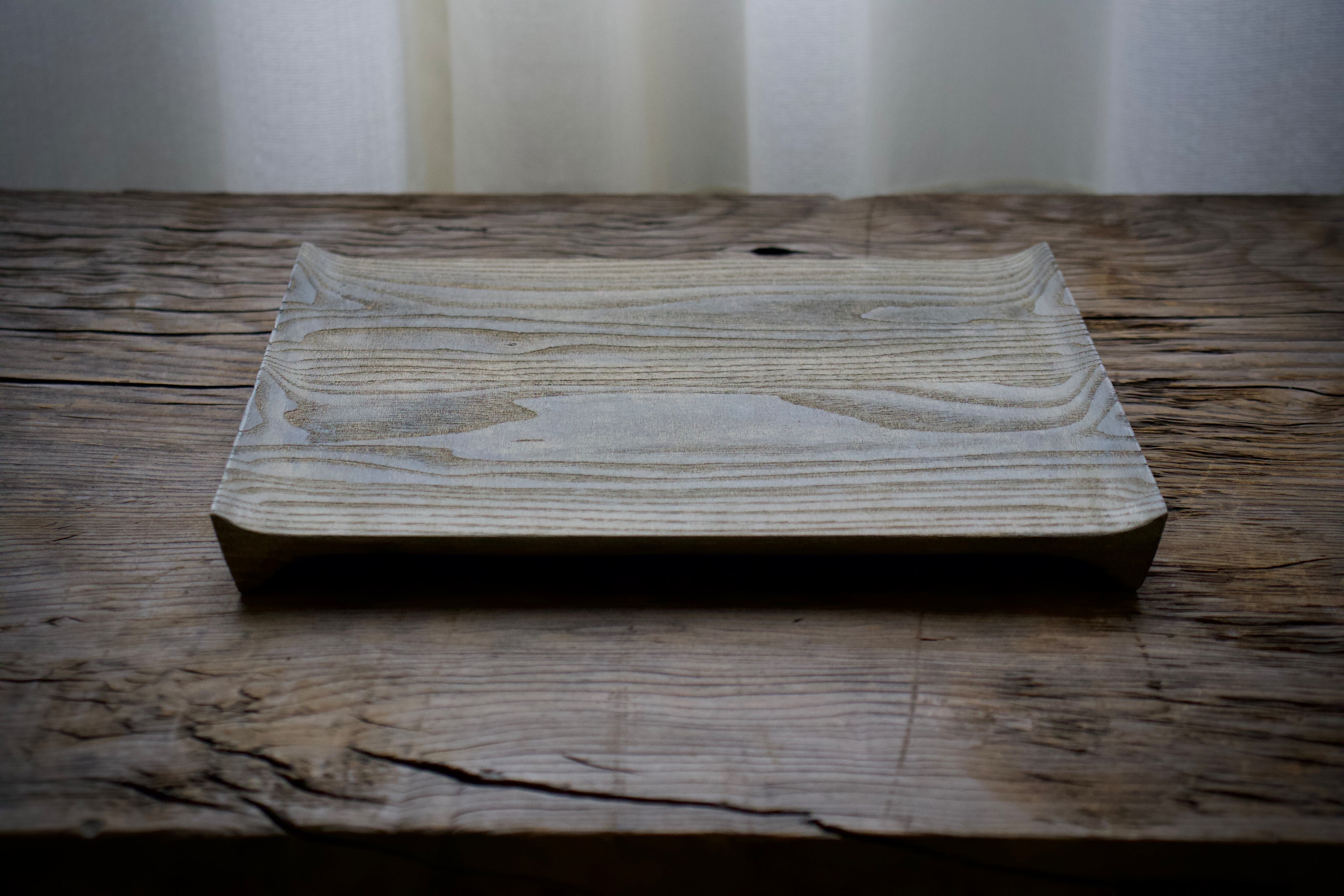 幸(さち)と書いて“さき”と名付けました。四季折々の恵みを穏やかに受けとめ、食卓に心地よい余白をつくるための折敷です。木の表情を生かした浮様が、季節の小さな器や湯気立つご飯をそっと引き立て、日々の食事を一つの風景として整えてくれます。
