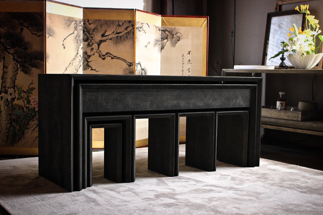 [ order製作 ] 黒浮様入子式立礼卓7点セット(納期約6ヶ月〜7ヶ月)
